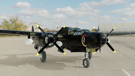 World War 2 American night fighter, one of my favourite aircraft. Control surfaces, landing gear and a couple other things are rigged.