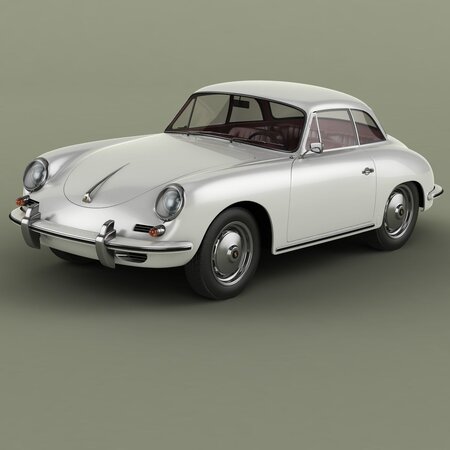 High detailed, correctly scaled model of 1961 Porsche 356B T5 Notchback Coupe Hardtop by Karmann. Originally created with 3ds Max 8. Rendered with V-Ray, files with standard materials are included. Unit system is set to metric units. Model is built to real-world scale. Geometry is Editable Poly (quads/tris only). TurboSmooth is use separately to objects (94 of 124 named objects) with iterations 2 ( 861740 polys, 445176 vert.) Each file was checked before upload. Materials and textures are included (5 textures - jpg 1024X1024)/