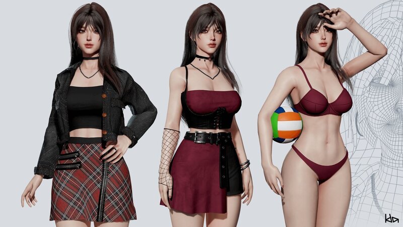 This model has 3 outfits: Performance, Casual and Lingerie. It also has nude version with uncensored textures.