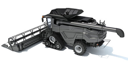Detailed 3d model of black combine harvester.