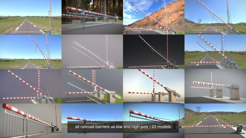 All Railroad Barriers Low and High-Poly 3D Model Collection