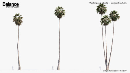 This product Washingtonia robusta – Mexican Fan Palm includes 6 unique 3D model variations with different heights, ages and forms of the species available for your production needs. We are sure our “ready to import and render” products will help you with production efficiencies and effectively.