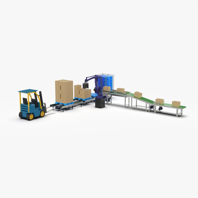Robot Palletizing Card Board Line 3D model