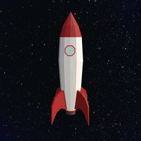 A space rocket model in low-poly polygons style.